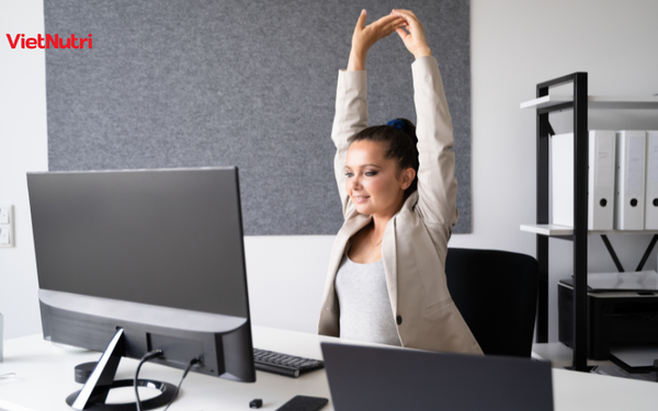 - Vận động nhẹ sau mỗi 1–2 tiếng làm việc. Đứng dậy, xoay cổ, đi lại vài phút giúp máu lưu thông.