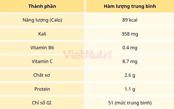 Một trái chuối trung bình (khoảng 100g) chứa: