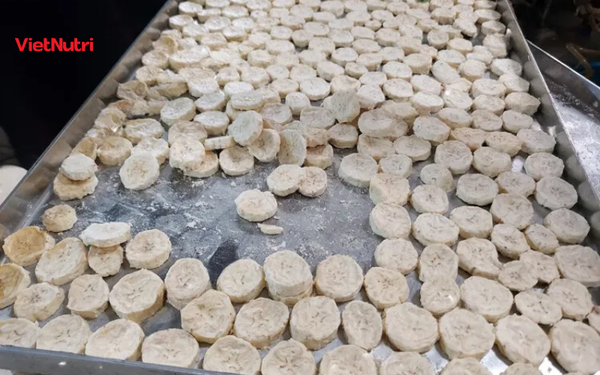 - Rửa sạch và sơ chế: Chuối được làm sạch, cắt lát đều và chuẩn bị cho quá trình sấy.