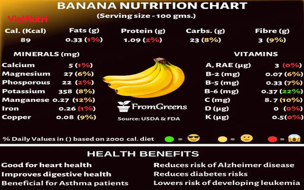 Theo USDA (Bộ Nông nghiệp Mỹ), một quả chuối cỡ trung bình (~10g) cung cấp: