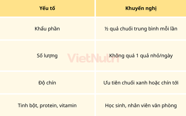 - Tối đa 1 quả chuối nhỏ/ngày.